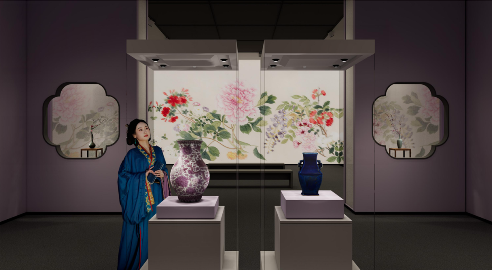 展览设计紧扣“二十四节气”这一主题,以不同时节的国画之境勾勒节气轮转,借中国传统窗花造型演绎与展品的时空对话。同时,展览以四时颜色为基调,透过传统窗花造型领略不同节气的文物细节。从序厅象征美好吉祥的海棠花窗,到四时色调渐变的展区,每一步都如推开一扇时光之窗,窥见节气背后的物候之美。